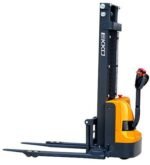 Built for efficiency and durability, this machine features a powerful drive and lift system that allows operators to handle heavy pallet loads with ease. Its compact design allows the stacker to move smoothly through narrow aisles and tight warehouse spaces where larger forklifts may not be practical.