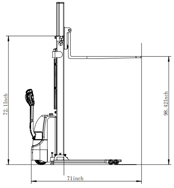 With a 98-inch lifting capability, this stacker allows operators to stack pallets on elevated storage racks and shelving systems. This helps maximize vertical storage space and improves overall warehouse organization.