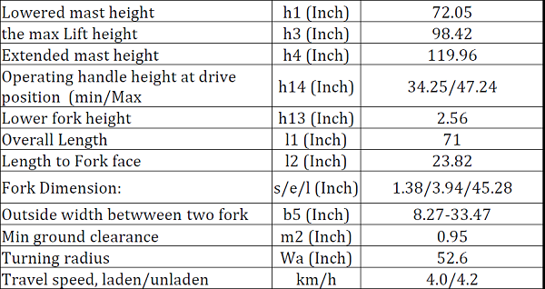 | Maximum Lift Height | 98 inches |