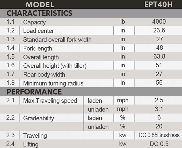 The fully electric drive and lift system provides smooth acceleration, precise lifting, and controlled lowering for safer load handling. A reinforced heavy-duty steel frame ensures durability in demanding environments, while the ergonomic multi-function handle allows intuitive control of travel, lift, and lower functions.