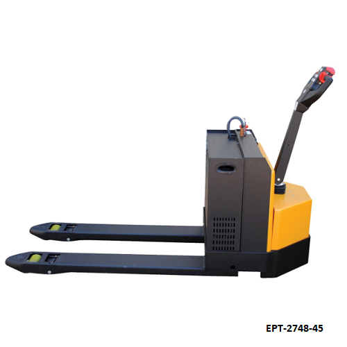 Its compact design and ergonomic control handle allow easy maneuverability and intuitive operation, making this electric pallet jack suitable for a wide range of warehouse and industrial applications.